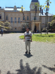 洋館前にて。今回は花壇が寂しい。2024年3月6日