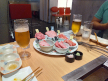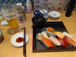 神楽坂の 杉玉 にて。お寿司とビールとゆず大根にしました。赤だしの味噌汁がなぜか嬉しい。2024年9月1日